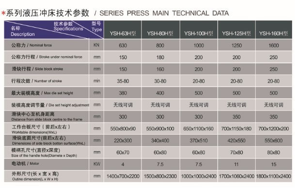 產品性能特點: 本機床主要是承擔各種不同厚度板材(0.1mm-20mm)的沖床、折彎、剪切、壓裝、矯平、擠時間壓、拉伸成型等工作。調模精度達到0.1mm,安全、便捷、可靠。軟到位沖床技術,提高產品質量及模具使用壽命。智能化控制,確保機器運轉及停止的精確性與安全性。具有調整、自動、半自(半自動可分為定程單次和定壓單次兩種工藝)三種操作方式;瑝K的工作壓力、空載快速下行和慢速工進的行程范圍可根據工藝需要進行調整。機器結構設計合理,便于實現自動化生產,降低成本,提高效率。先進的設計理念,低嗓音,低消耗,節能環保。 選配: 光電安全保掮裝置、送料機(空氣、機械及CNC各類)、料架、矯平機、機械手、模具照明裝置。
